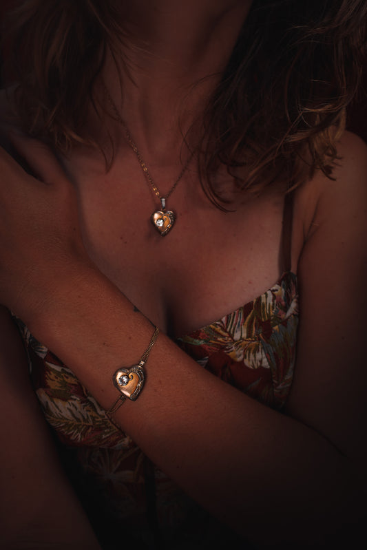 Precious Heart Locket Set - Matching Necklace & Bracelet