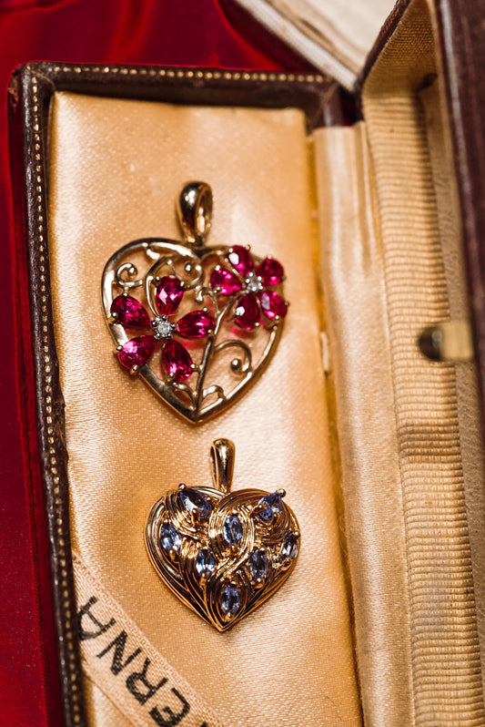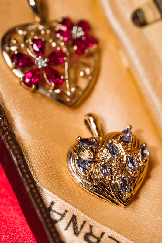 Dazzling Filigree Heart Pendant with Rubies & Diamonds
