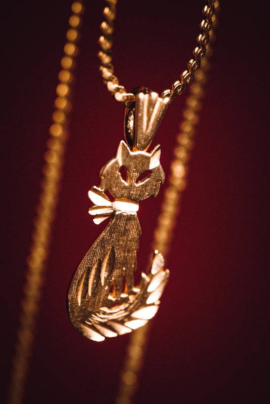 Vintage Gold Curvy Cat Pendant