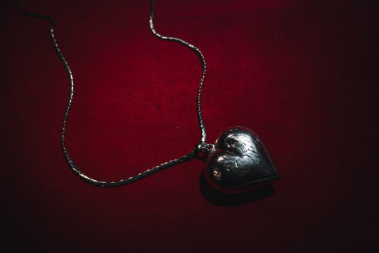 Vintage Silver Colossal Heart Pendant with Extra Long Chain